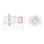 The Harmony Series 16A/4P-MXS3-A146-6 IP67 400V Industrial Plug is designed according to IEC 60309 standards and is suitable for 400V three-phase applications (L1, L2, L3, PE).
