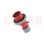 This 32A 4-pin industrial plug is suitable for three-phase power systems requiring high protection against water and dust.