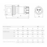 With a rated current of 32A, rated voltage of 400V, IP44 protection, and a defined 6h clock position, this plug ensures correct phase alignment, stable current transmission, and protection against splashing water.